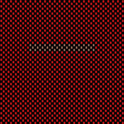 In a simple setup (and where the particles on the edges of the screen are not allowed to move--they function like the "rim" on a drum head) There was an obvious "ripple" effect that occured outward from the initial point of perterbation. There was also simple relection--the waves tended to bounce back off the "walls" just as real waves would. ![]() ![]() ![]() In a setup with an obstacle in the middle of our screen, we see what appears to be natural wave patterns as the waves "bend" around the wall we've constructed. ![]() ![]() ![]() |