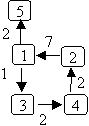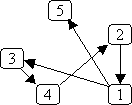 In this graph, there is a path from node 2 to node 5: 2→1→5. There is a path from node 1 to node 2: 1→3→4→2. There is also a path from node 1 back to itself: 1→3→4→2→1. The first two paths are acyclic paths: no node is repeated; the last path is a cyclic path because node 1 occurs twice.