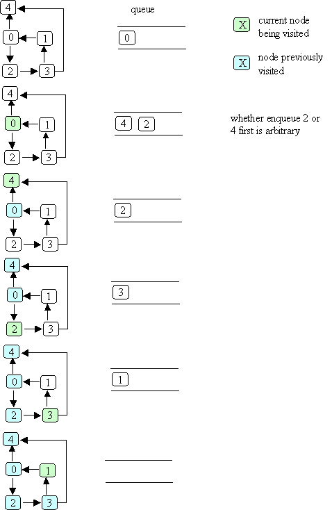 Note that in the example illustrated above, the order in which the nodes are visited is: 0, 2, 3, 1, 4. Another possible order (if node 4 were the first successor of node 0) is: 0, 4, 2, 3, 1.