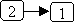 In the directed graph, there is an edge from node 2 to node 1; therefore: