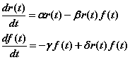 Lotka-Volterra model. Let r(t) be the number of rabbits and f(t) be the number of foxes. These are functions of time,