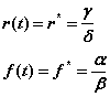 There are two solutions. The first has r(t)=f(t)=0. This is an uninteresting case. The second solution is