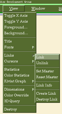 For this example, we have selected to link the X and Y axes. The most commonly-used types of links are X/Y links and record links. These two types of links work somewhat differently. For X and Y links, all views linked to a given link share the same X and/or Y axis ranges. For record links, there is a master view and one or more slave views. Only those records shown in the master view can be shown in the slave view(s).