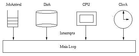 when one occurs, Sim.mainLoop() advances its current time to the interrupt