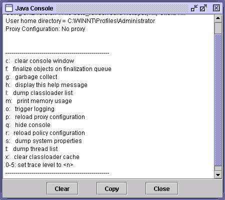 This removes (destroys) all Modified jar files will be downloaded from the server when a page with an applet is refreshed or revisited if you first do this: type "x" in the Java Console to clear the Classloader cache. |