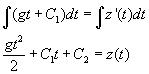 Maple omits the constant of integration and this can lead to errors if you are not careful. Perhaps the most familiar problem where this arises is an object falling under the force of gravity. You know that this is governed by Newton’s Law