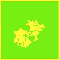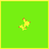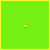Here's an image of what an initial forest configuration might look like. In this image, empty is shown in yellow, tree is shown in green, and burning is shown in red. The example images show a forest that is 50 x 50.