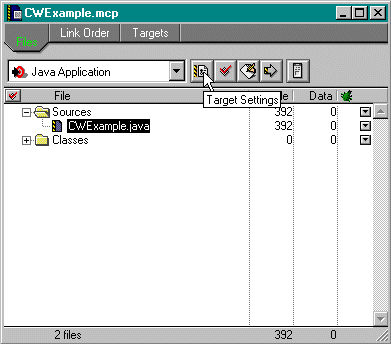 You begin by looking at the project window. From there, click on the "Target Settings" button, as below: