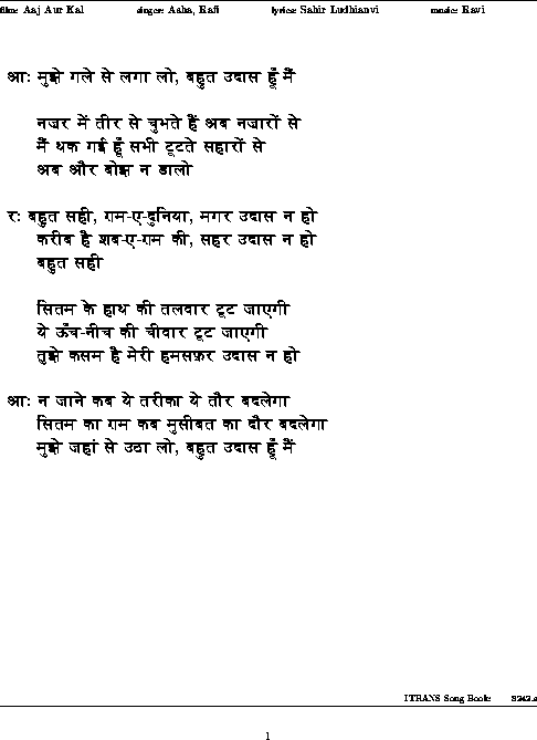 Song Title: mujhe gale se lagaa lo, bahut udaas huu.N mai.n
