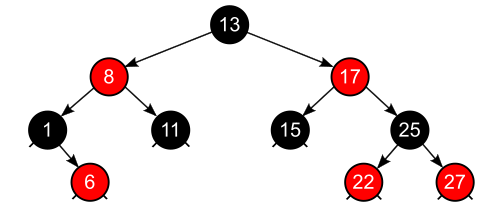 - All paths from the root to a null child have the same number of black nodes (black height of the tree).