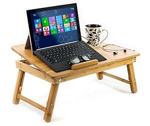• Adjustable bamboo tray for laptops, tablets, books and more