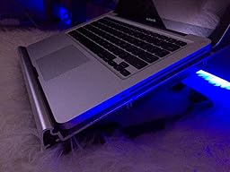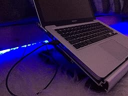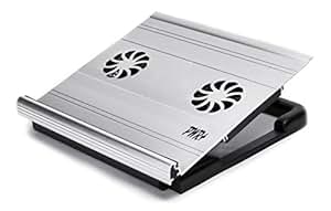 Product Description : Pwr+ Laptop Stand helps reduce the operating temperature of your laptop and allows for steady airflow around it. It uses active cooling methods to distribute air quietly and evenly under the base of your laptop or netbook. Powered by your laptop's USB port (usb cord is included), two silent fans use so little energy that it won't even have any impact on the battery life. Wherever it is used - be it a desk, sofa or your lap - Pwr+ stand provides a most comfortable typing angle and reduces neck and shoulder stress thanks to its unique design and shape. Nine adjustable height, unique raise and lock stand mechanism provides ample clearance and air flow beneath the stand even when used on top of thick blankets.