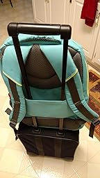 We bought this backpack for our college age daughter. She loves it! It rainsnalit where she lives and she desired a water resistant backpack. Also she loves the special compartment for her laptop. There are extra compartments inside and out to help her stay organized. The bag came much quicker than the initial shipping estimate indicated. It easily attaches to rolling luggage and the cike displayed in the drink pouch is a small one. Color was true to the picture and she is happy with her bag.