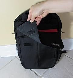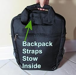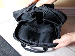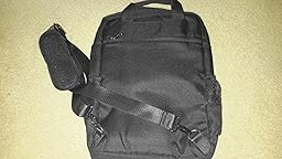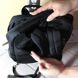 This bag can be carried many ways. Appealing to both male and females, you have at least three different ways to carry this bag. I think the bonus here is that each way you don't want visible , can easily be "stowed away" so you can't see it. Straps and clips can be tucked away in their respective parts to simplify and smooth out your appearance. Another bonus is the hidden back pocket that travels really deep into the bag, great for storing more secure items. A great bonus is the water carrying straps on either side of this bag. I didn't point them out in the video but something like this encourages me to be healthier, however little that may seem. And in the case you love mountain dew, 12 oz unopened cans fit just right on the sides too! The inside is well padded and quite large and can accommodate a wide range of laptops. The front pockets are great for organizing wires, plugs, adapters, and such, along with pencils, notepads, and other necessary objects.
