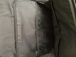 • Constructed with sturdy, durable and weather resistant polyester exterior; reinforced seams and tear-resistant fabric lining provide reliable use. Adequate padding on interior of backpack lid for bumps and shocks absorption keeps your computer from accidental scratches.