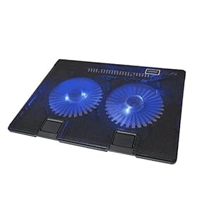 • [High Performance]: Dual oversized 140mm fans with dual blue LEDs spin silently at 1200 ± 10% RPM to pull in cool air from the bottom of this laptop cooling pad