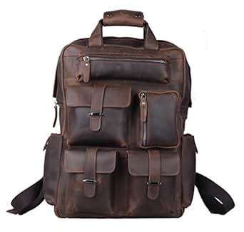 • handolederco. Leather Backpack Bag 16" Genuine Leather Retro Rucksack Backpack College Bag,school Picnic Bag Travel Bag