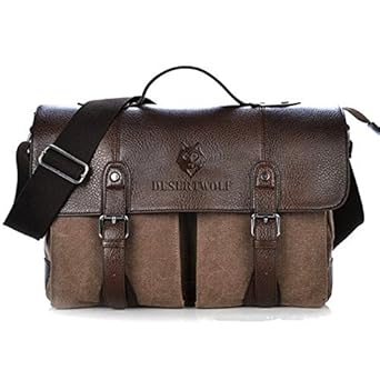 DesertWolf Canvas PU Leather Vintage Cross Body Messenger Bag/Briefcase Fit 13.3 inch Laptop