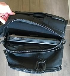 - There is no side access to the laptop, or to the main compartment/pocket. You must un-clip the front flap and flip it back to access the main compartments (and even the large outer pocket). This isn't a big deal, but some might find it annoying that there is no quick access to any large pocket.