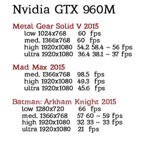 The next-generation GeForce GTX 960M brings serious gaming performance to the notebook, driving impressive 1080p gameplay at ultra settings in sleek new designs.