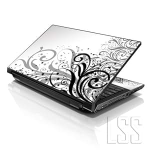 • LSS 15 15.6 inch Laptop Notebook Skin Sticker Cover Art Decal Fits 13.3" 14" 15.6" 16" HP Dell Lenovo Apple Asus Acer Compaq (Free 2 Wrist Pad Included) White and Grey Floral