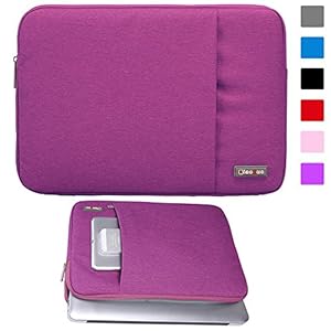 The case's woven fabric is thick and durable without being bulky. The color is a pretty, understated mix of medium and darker shades of plum. The front pocket zips and is deep enough to hold my mouse and charge cables. The stitching is tight and the zipper glides around the curves. I have purchase three chromebook covers, and this is the one I have chosen for my personal use.