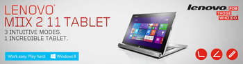 The 11" Lenovo Miix 2 provides on-the-go productivity in Laptop Mode, comfortable viewing in Stand Mode and handy entertainment with Tablet Mode. The detachable AccuType Keyboard-dock makes switching modes seamless, the latest processor technology and premium audio ensure top multimedia performance.