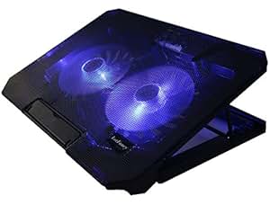 • LotFancy® Laptop Cooling Pad Cooler with Dual Fan with Led Light Dual USB Port Raise and Lock Stand Adjustable Speed and Height For 10"- 17" Laptop Notebook tablet