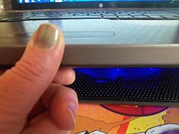 LotFancy® Laptop Cooling Pad Cooler with One Fan with Led Light For 13''- 15" Laptop Notebook tablet, just came in the mail today, opened it up and hooked it right up. Very sleek design, has little feet to get laptop up off surface for better air circulation passing underneath and for the fan ventilation...And it is SUPER QUIET, YAY!!! One more time YAY, No really I can not hear it at all :) this is what I am HAPPIEST about obviously. I also am liking the slant that those little feet give it, just the perfect angle for typing up reviews. Gives off a nice little back lite from underneath as well. Don't make the mistake I did and buy a different one because it has more fans I already did that and I am going to tell you that it was a mistake, it was loud and it did not put out even half the wind this fan does and there was 3 smaller fans on that one, that's why I am writing this review to tell you before you waste your time and money, you will be satisfied with this one, this one larger fan does a much better job then 3 smaller ones, it even puts out enough air that it gently cools your palms while typing, this thing is great guys. I was invited to purchase this at a discounted price for a full and honest review of the product, and I have to say Thank you to LotFancy for Awesome, Quality made products!! One last thing, I included some photos below so you can see how this may work with your own setup, and the last 2 photos I wanted to include that USB extra, you will still be able to use your USB port while using the fan at the same time because it is the extension type that you can jump off of and use another usb at the same time, and YES IT DOES WORK, ANOTHER YAY!! I hooked up my camera to upload these picks here at the same time and included the photos while finishing up this review, I HIGHLY recommend this for all laptop users, you will be very pleased :)