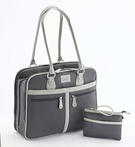 I absolutely LOVE this bag!! I searched for weeks online for a women's briefcase-type bag. When I saw this one I fell in love. It is SO cute, and people at work compliment it all the time. In case you're wondering how big it is, it's pretty large, but it's nothing ridiculous and it's quite functional. I carry around my work laptop, the charger, two notebooks, my wallet, keys, phone, pens, and even a flat rectangular tupperware dish for lunch on occasion. I absolutely love this bag, I mean, you cannot go wrong. The quality is amazing, it has metal feet on the bottom so the bag doesn't sit directly on the floor. There are also several zippers and hidden compartments. There are also defined pockets in the front compartment for USB's and and writing utensils. The accessory clutch is cute too, I haven't used it much, though. I always try to leave reviews that point out the good and bad in an item, but I can't think of any issues I'm having or anything I would change! I would recommend this bag to any woman who wants to be stylish, professional, and practical in the workplace. Worth EVERY single penny!!