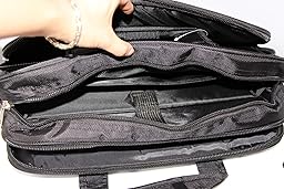 This bag is outfitted with padded double top handles for carrying the bag in your hand like a briefcase or wearing it over your wrist like a tote. In addition, the design includes an adjustable shoulder strap for carrying as a messenger bag. With its modern all-black design, the bag looks professional to enhance your appearance.