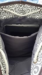 Well, the book bag is very stylish. When I bought it, I liked the sturdy feel of it. It is cloth, but felt like a durable cloth, and it really does look nice. It easily fits my laptop in the compartment and the padded compartment keeps it safe from my notebooks. It's got big, deep pockets, perfect for storing power cords, pencils, calculator, and highlighters.