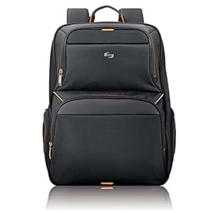 Solo Pro 17.3 Laptop Backpack padded compartment protects laptops up to 17.3”. Features include dedicated interior pocket for iPad or tablet, quick access pocket and front zip-down organizer section, side accessory pockets and padded backpack straps for added comfort. Comes with 5 year warranty.