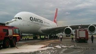Having miraculously landed the plane at Changi airport, the pilots encountered yet more dangers. With "fuel streaming from the wing" and tyres reaching exceptionally high temperatures from maximum braking, the risk of explosion was high, hindering the evacuation process: "one spark and we were cinders".