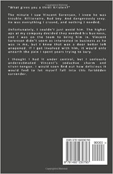 Kristen is a young, hard-working wealth management analyst that has just receive the opportunity to work with her boss to secure a major client. Everything is on the line for this account and securing it could mean a promotion for both, she and her boss. So when Kristen enters the office of CEO Vincent Sorenson, all of the rumors ring true. She's face-to-face with the jaw dropping heart throb who defies the CEO stereotypes and embraces the surfer within. Immediately her nonexistent sexual cravings kick into gear. The immediate connection between Kristen and Vincent is palpable but she's determined to keep things as professional as possible.