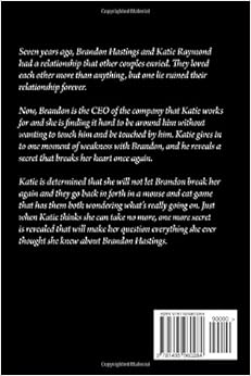 The plot was ok and for this I would give it 3 stars, Brandon was playing with Katie and his secrets were being slowly revealed. The writing was also a 3 for me. It wasn't great and some descriptions I questioned, I think greater attention to detailed is needed. What were the colleagues doing as Brandon was trying to get Katie off under the table while they simultaneously shouted at each other? That would have made for one interesting meeting.