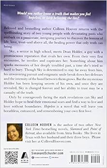 Colleen Hoover wrote about an extremely difficult subject but treated it with immense respect and delicacy that equaled a meaningful experience for the reader whether this thing has touched their life or not. I felt everything Sky felt and everything Holder felt. He was the most amazing character ever. The sex scenes were perfectly balanced and were also written with an eloquent amount of class and respect which provided the reader with a deeper respect for the characters intimate connection.