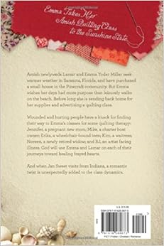 Retired Amish newlyweds Emma and Lamar Miller have decided to buy a winter place in Sarasota, Florida. But it wouldn’t feel like home if Emma didn’t take her quilting materials and offer classes. Wounded and hurting people have a knack for finding their way to her classes for some quilting therapy: Jennifer, a pregnant new mom; Mike, a charter boat owner; Erika, a wheelchair-bound teen; Kim, a waitress; Noreen, a newly-retired widow; and BJ, an artist facing illness. And when Jan, visits from Indiana, romance is also added to the class discussions.