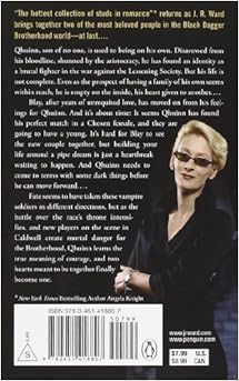 This is book 11 in the Black Dagger Brotherhood series. Sadly, it's stopped being about the members of the Brotherhood. Now we have so many side stories and new characters it's nigh on impossible to keep up with the main story. This one was supposed to be about Blaylock and Quinn. Instead, only about 40% of the book focused on the actual couple. And even then it was redundant thoughts of unworthiness or mistrust and general self-hatred. And as many people have pointed out, the sex scenes made me cringe more than once because they were missing an integral piece...preparation. What happened there? Gay men aren't concerned with INJURING their lovers? Dry sex would be bloody and painful not hot and fulfilling. Animalistic is not equal to passion. Neither is complacency in a lover attractive. The Quinn/Blay plot line felt clipped and rushed and was so broken up by interjections, I finally started skipping to maintain continuity. To be honest, it felt like Ms. Ward lacked interest in their story.