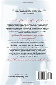 I have mixed feelings on this. I'm a fan of the series and had big expectations for Matt but ended up feeling a bit disappointed. The writing was solid, I enjoyed the banter between the supporting casts of characters, but the romance was just....plain ole' vanilla. Sure Matt gets a bit bossy and he likes to use his rope but I feel like this was BDSM-ultra lite. I was hoping for something a bit more edgy and sexy. This was cute and sweet with a very small dash of kink. Before I got to the middle of the book I was feeling a little bored and was hoping the bakery would get robbbed or a car bomb would go off or something to help move the story along. BOO! Overall, I'm giving this 3.5 stars. It's not what I wanted but it was a solid story and should work for those looking for a sweet comtemporary romance with very minimal kink and not a lot of action.