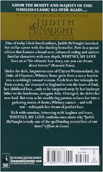 Meticulously researched and set against the background of Regency England's country charms and London society, this classic historical romance boasts a hero and heroine who possess deep passion and strong, independent character, as well as a heartfelt story line that will keep readers turning the pages. Author Judith McNaught has endeared herself to readers with the quality of her writing and Whitney My Love--McNaught's first bestseller--is a not-to-be-missed example of just why her stories are so eagerly awaited by fans everywhere. --Lois Faye Dyer--This text refers to an out of print or unavailable edition of this title.
