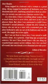 Twenty-nine year-old sex therapist Grace Alexander has been celibate for four years after experiencing a horrendous relationship with a self-centered, cruel former lover. Grace's flamboyant, exotic friend Selena decides it's time to get Grace back in the swing of things and she has just the solution -- an ancient tome holding a magnificent male specimen cursed to live between the pages of the book for eternity -- until he's called forth with a magic spell to serve as a love slave to his summoner for a period of one month. Having experienced Selena's so-called magic spells before, Grace isn't worried that the gorgeous guy in the picture is going to magically appear. Surprise, surprise, and happy birthday to Grace! Julian of Macedon, half God, half mortal, is so exceptionally good looking that he made women fall at his feet and men green with envy and jealousy, in his time -- 149 BC. Jealousy and atonement for his sins, is what finds Julian cursed and trapped between the pages of a book only free for one month at a time, if he's lucky. Sometimes that freedom only comes once every one hundred years. When Grace summons him from the book, Julian is resigned and ready to fulfill her every sexual dream and fantasy. Grace, however, has other ideas for Julian. When she discovers just what a heartbreaking, loveless and dark life he's lived, Grace decides to show Julian just what friendship and love mean. Ms. Kenyon creates an absorbing tale filled with larger than life characters from the lowly mortals on up to Greek gods, goddesses and mythological beings. Grace is one of the strongest, most compassionate heroines and Julian one of the most sympathetic, confused and tortured heroes to ever grace the pages of a romance novel.Read more ›