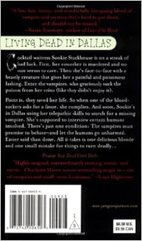 The last thing Sookie wanted was to find Lafayette Reynold's body in the back Andy Bellefleur's car. Lafayette was the cook at Merlotte's Bar, where Sookie waited on tables. Andy was a police detective who left his car at the bar because he was too drunk to drive it home. Now Bon Temps, Louisiana is a small rural town, where murders are mercifully rare. However, anything like this is bound to be a major headache for Sookie, who is telepathic, and whose boyfriend is Vampire Bill, the town's major predator. Make that ex-predator; Bill is one of the good people, getting his nourishment from artificial blood these days. As does any vampire who wants to fit into the mainstream world. But a simple murder case is not enough. Before Sookie and Bill can look into Lafayette's death, Eric, the local vampire leader, summons them to Shreveport. Eric has agreed to send them to Dallas, where Sookie's telepathic talents are needed to solve a disappearing vampire problem. Even before they get to Shreveport, stuff happens. Sookie has a run in with a maenad, who wants tribute from Eric, and decides to write him a note about it on Sookie's back. Bill barely gets Sookie to Eric's lair, where she can be healed. Don't expect Dallas to be any better. There, Sookie finds herself in conflict the local anti-vampire club, 'The Fellowship of the Sun,' and scheduled for sacrifice. That, in two paragraphs, is just a hint of all the contents of Charlaine Harris's latest thriller about Sookie Stackhouse, northern Louisiana's answer to Anita Blake. And a very good answer she is. It's unfair to make a direct comparison, since the authors have different intentions, but Sookie is a near total contrast with Laurell Hamilton's heroine.Read more ›