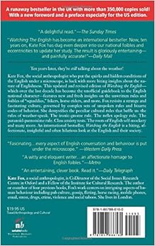 Kate Fox, a social anthropologist, is Co-Director of the Social Issues Research Centre in Oxford. Her work involves monitoring and assessing global sociocultural trends, and has included research, publications and broadcasts on many aspects of human behavior including: social aspects of drinking, sex differences, flirting, body image, pub culture, gossip, eating, health issues, taboos, horse racing, mobile phones, email, stress, drugs, crime, violence and disorder.