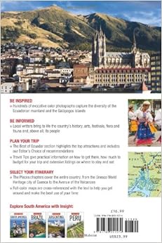 This is a fantastic picture book that will give you a clear sense of Ecuadorian culture and the sights you have to look forward to. My husband is very visual and really enjoyed being able to browse through this to help with our planning. It really made us excited about the trip. However, I think it is a little bit thin on actual content. The recommendations were good, but I didn't feel that I was getting a good representation of what was really available, especially related to lodging, transportation, etc. I will say that it worked beautifully as a companion to another, content heavy, tour book.
