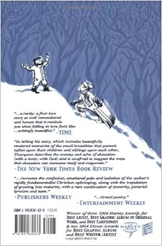 Blankets, however, realism reigns supreme in both the story arc and in the humanity of its characters. Thompson himself is the protagonist, and this is his tale of growing up, falling in love (and realizing the physical and moral complications that can imply), discovering the texture and limits of his faith, and arriving at a point from which he can look back at those experiences. The snowy Midwest, peopled by overweight parents, hairy youths, and lovingly depicted younger siblings-including a respectfully and realistically treated minor character with Down syndrome-is energetically realized in Thompson's expressive lines and inking. Much of the story occurs when Craig and his brother Phil are young boys and includes images of such boyish pranks as peeing on one another. Older high school students who have reached an age when nostalgia is possible will warm to Thompson's own wistfulness. This is a big graphic novel, in concept and successful execution.