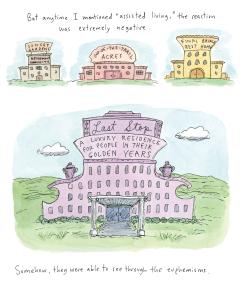 While the particulars are Chast-ian in their idiosyncrasies—an anxious father who had relied heavily on his wife for stability as he slipped into dementia and a former assistant principal mother whose overbearing personality had sidelined Roz for decades—the themes are universal: adult children accepting a parental role; aging and unstable parents leaving a family home for an institution; dealing with uncomfortable physical intimacies; managing logistics; and hiring strangers to provide the most personal care.