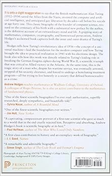 Michael Saler, Times Literary Supplement"On the face of it, a richly detailed 500-page biography of a mathematical genius and analysis of his ideas, might seem a daunting proposition. But fellow mathematician and author Hodges has acutely clear and often extremely moving insight into the humanity behind the leaping genius that helped to crack the Germans' Enigma codes during World War II and bring about the dawn of the computer age. . . . This melancholy story is transfigured into something else: an exploration of the relationship between machines and the soul and a full-throated celebration of Turing's brilliance, unselfconscious quirkiness and bravery in a hostile age."--