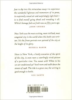 New Yorker, an impeccable style employed to powerful effect in this exquisitely precise contemplation of the New York City of his youth, and, by extrapolation, of humankind at large. Written in 1948, this witty and perceptive praise song to New York is a classic.”