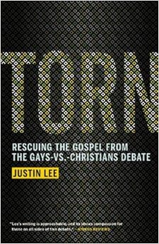 Rachel Held Evans, blogger, author of Evolving in Monkey Town and A Year of Biblical Womanhood"In TORN, Justin Lee blends simplicity, clarity, humility, honesty, and vulnerability in a gracious and eye-opening way. The book brings fresh perspectives to old and polarized debates, and it offers a wise and faithful way forward for pastors and other Christian leaders, parents and other family members, not to mention gay men and women themselves. This is